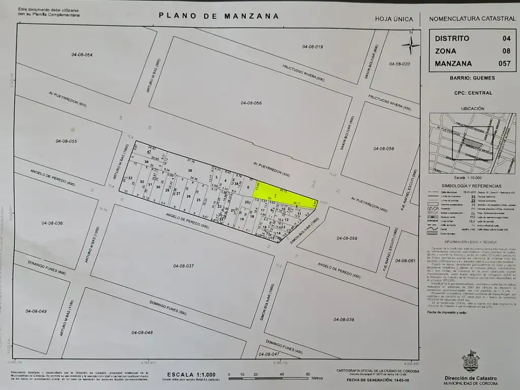 Medidas: lote irregular, con 49,75 mts de frente sobre Av. Pueyrredón (Ver foto plancheta catastral)