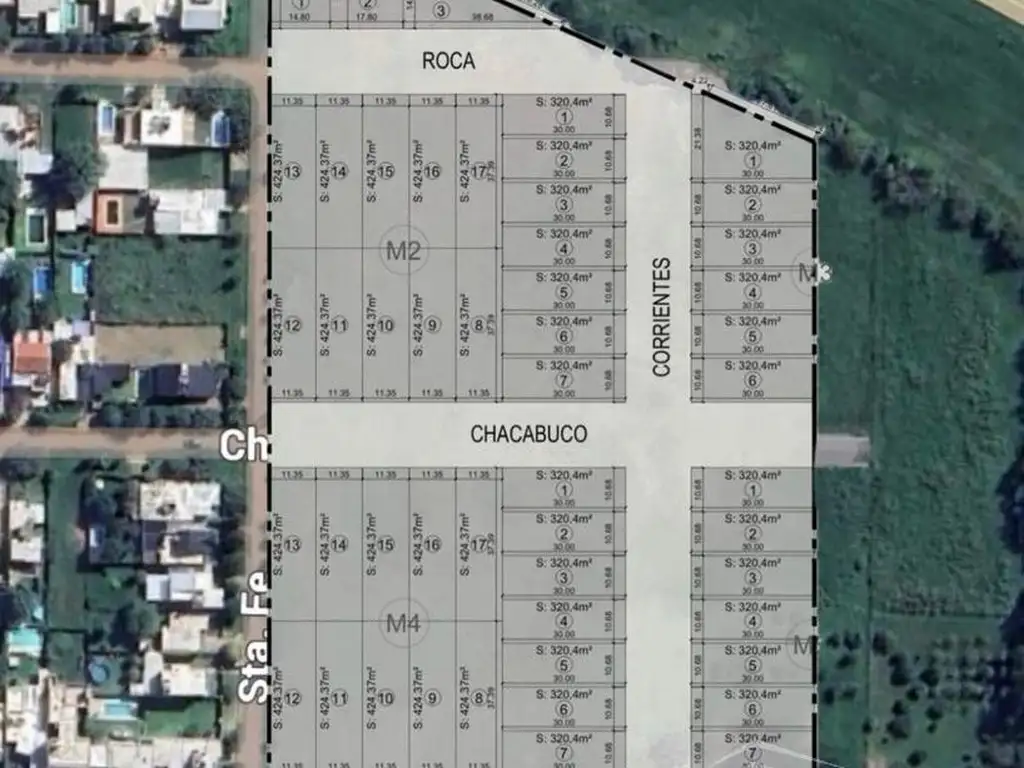 Lotes amplios de 424,4 m2 con medidas generosas (11,40m de frente x 37,40m de fondo), ideales para diseñar casa con jardín y pileta.
