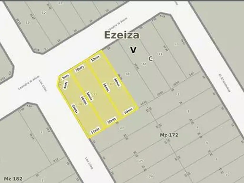 Tres lotes de 360m2 aproximadamente cada uno. Uno esta ubicado sobre la esquina de Leandro N. Alem y Las Lilas; y los otros dos cuentan con frente de 10mts sobre la calle Leandro N. Alem. Excelente ubicación: a una cuadra de la ruta 205, a una cuadra del Hospital y a dos cuadras de la estacion nueva de trenes. A minutos de la zona centrica de Ezeiza.