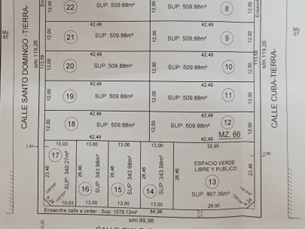 - 320 m² aprox. (esquinas): 1b, 7 y 17. *Anticipo U$S 10.000 y 24 cuotas U$S 650 - Precio de Contado U$S 24.000*