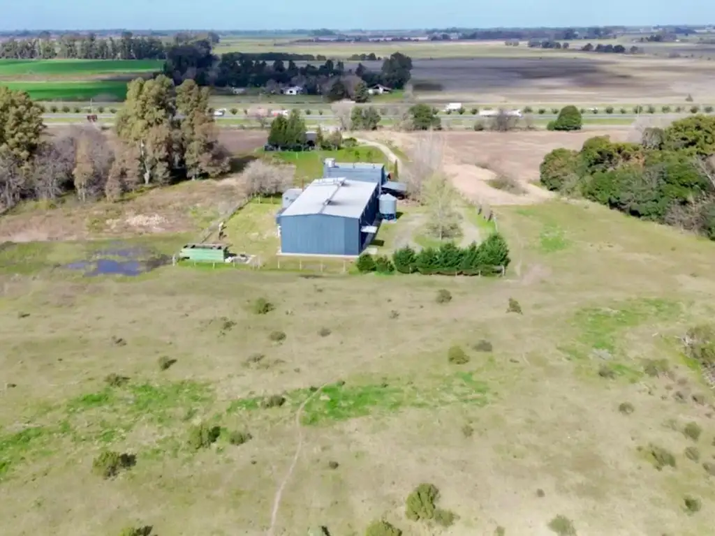 1) Galpon (500 metros) con chapa laterales y techo, piso de material, ( antiguamente utilizado como Fábrica de Cervecería Artesanal), con su propio tratamiento de aguas, termotanque, utiliza agua de pozo.