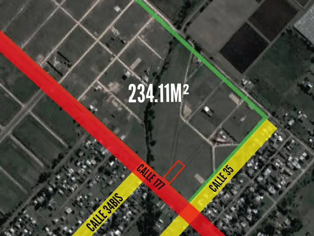 _ Terreno de 234.11mts2 en venta ubicado en calle 177 e/ 34bis y 35 (Olmos, La Plata, Buenos Aires). Con disposición frente y orientación norte ._ Acceso por calle de tierra mejorada con servicio de electricidad en la zona.