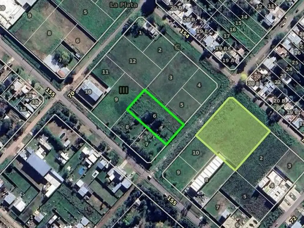 _ Terreno en venta ubicado sobre calle 71 entre 154 y 155 (Los Hornos, La Plata, Buenos Aires). Con disposición frente y orientación al sureste.