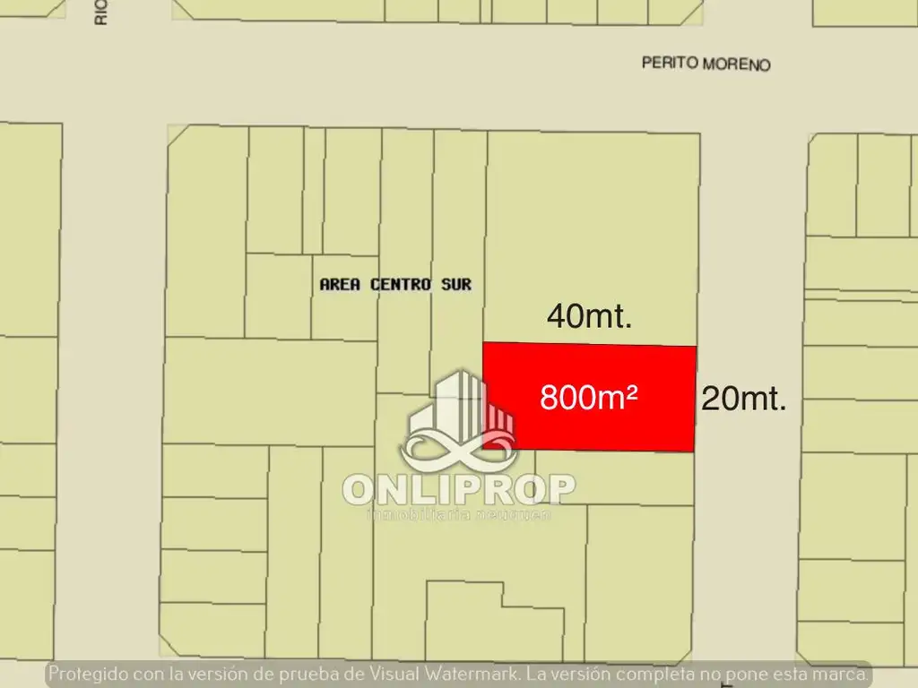 La propiedad se encuentra sobre calle Chubut al 350, con 20 metros de frente y 40 metros de fondo, 800 metros cuadrados totales.
