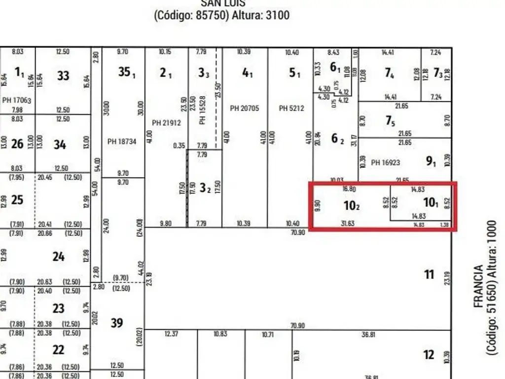 Medidas del terreno: Frente 9,9 por 31,63 de fondo (313 Metros).