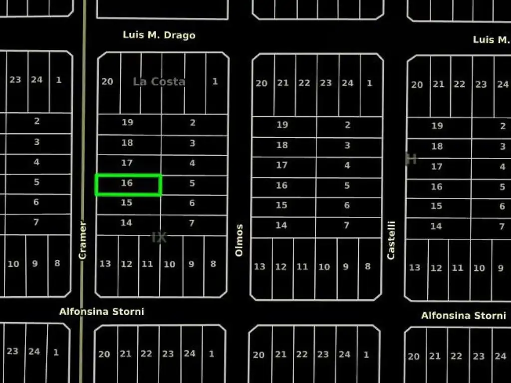 _ Terreno de 500mts2 en venta ubicado en calle Cramer entre Alfonsina Storni y Luis M. Drago (Nueva Atlantis, Buenos Aires). Con disposición frente y orientación oeste ._ Regular entre medianeras, cuenta con medidas de 12.5mts de frente por 40mts de fondo.