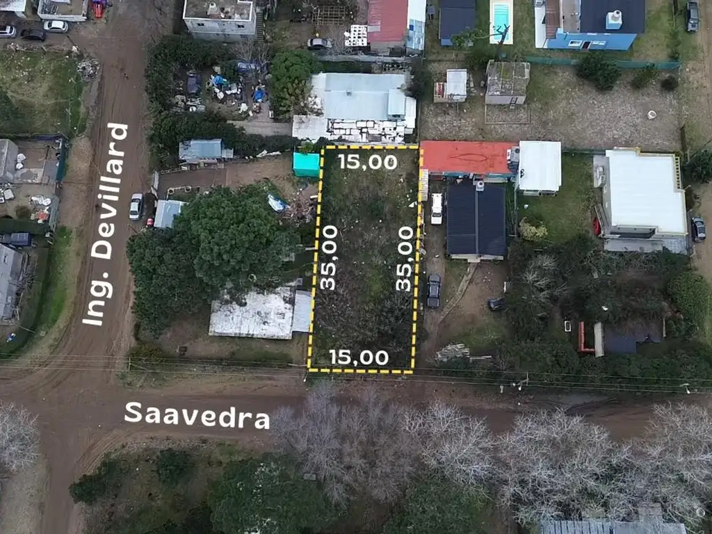 Cuenta con una superficie total de 525 m², con 15 metros de frente por 35 metros de fondo, lote regular.