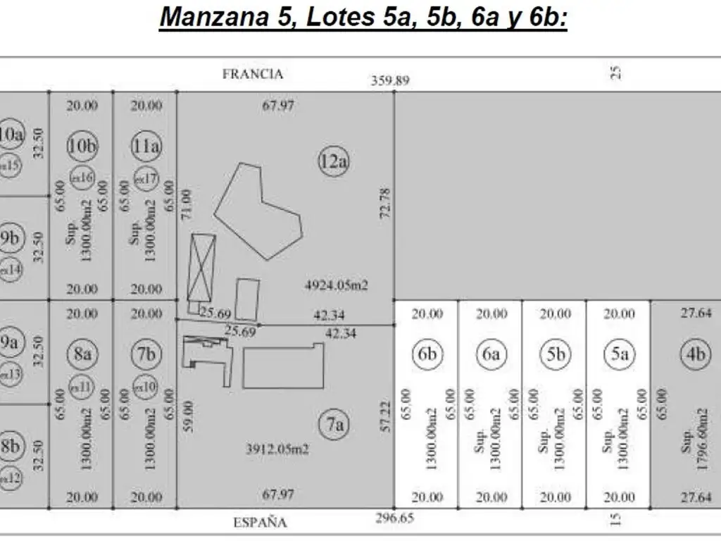 Manzana 5, lote 14a: 1.300,00 m2, frente 20 m., Francia e/ Suecia y R. 210: u$s45.900.-