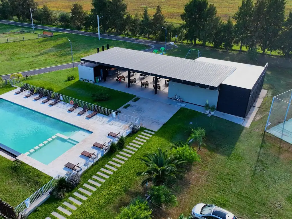 Amenidades: laguna con isla, Club House, piscina, cancha de fútbol y tenis, espacios recreativos