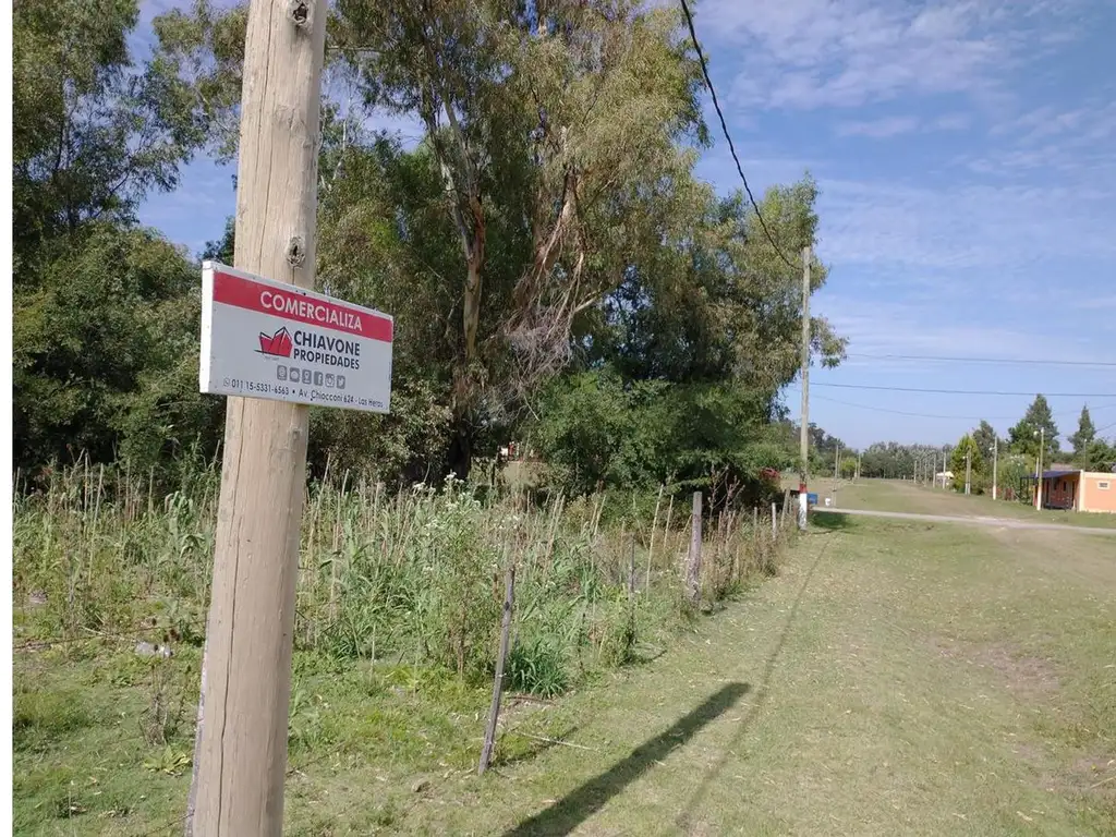 Amplio lote en venta en la localidad de Plomer, Pdo. de Gral. Las Heras. Ubicado en esquina, en las intersecciones de las calles Los Paraísos y Los Álamos, a 100 mts del acceso principal a la localidad.
