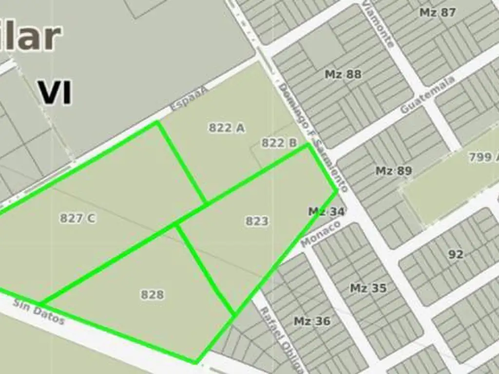 Nomenclatura catastral: Partido 84 Pilar, Circunscripción 6, Parcela 823, Partida 3482 y Sup Terreno 19.934 m2