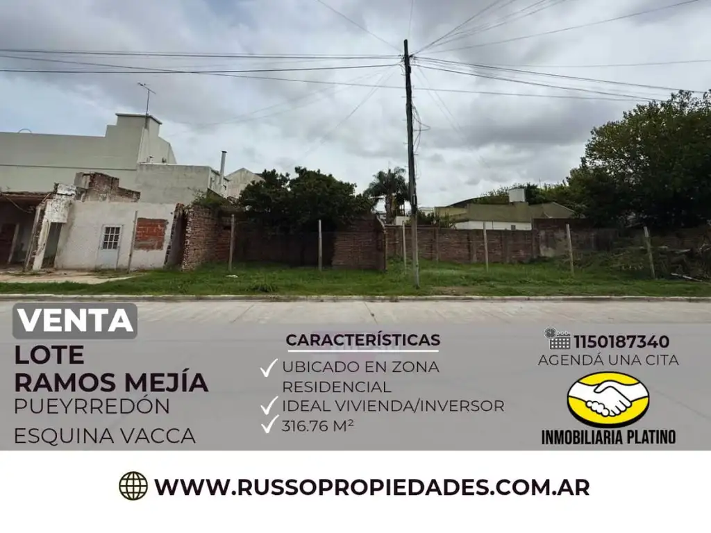Venta lote 316.76 m2 Ramos Mejía