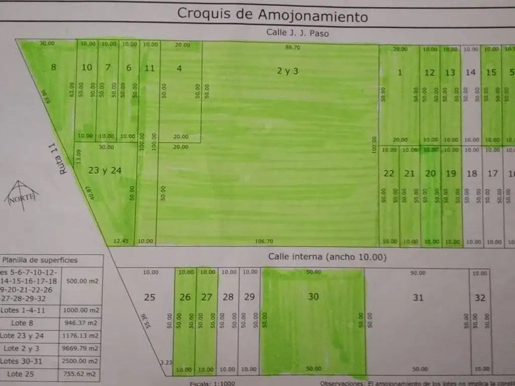 Long. Frente: 10 m