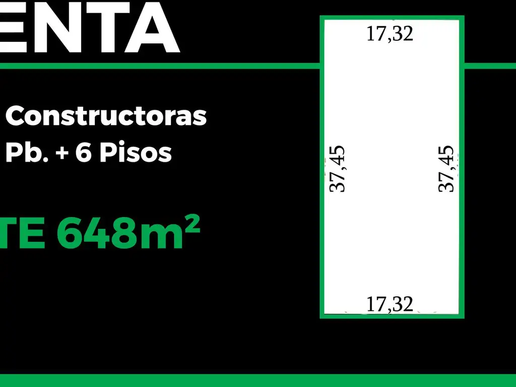 Según normativa, el lote es apto para construcción de Planta Baja más 6 pisos, convirtiéndolo en una opción estratégica para el desarrollo de un edificio de propiedad horizontal, oficinas o proyecto mixto.