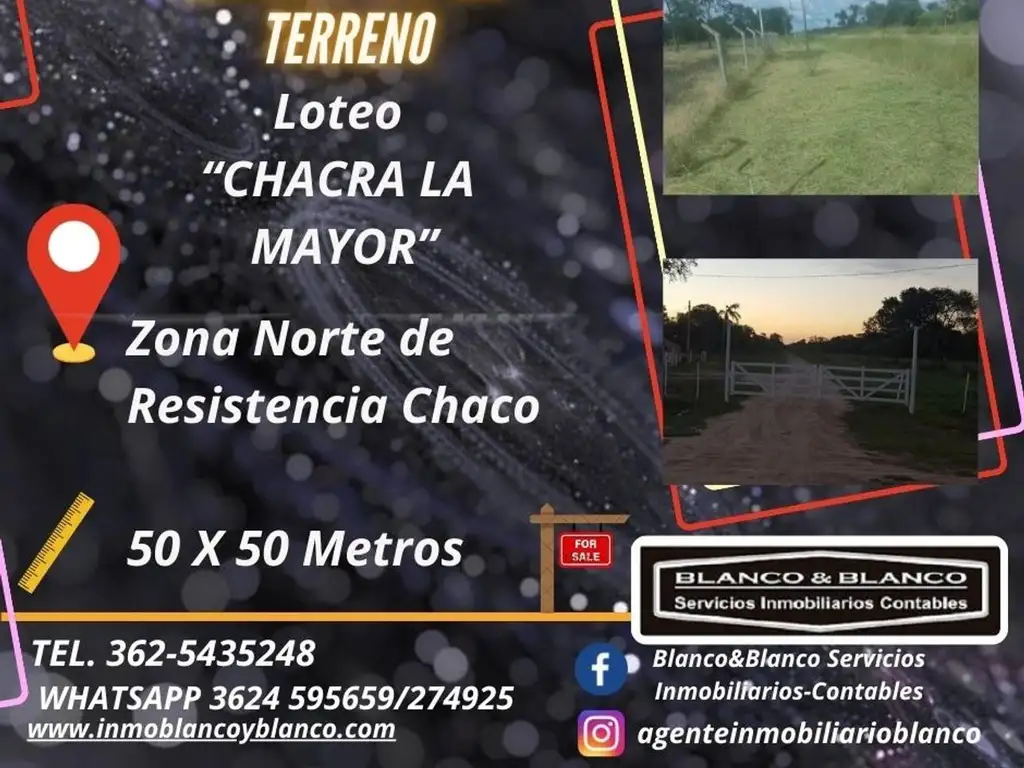 Terreno en venta sobre esquina de 2500 metros cuadrados con 50metros de frente x 50 metros de fondo ubicado en el Loteo "LA MAYOR" de Resistencia Chaco.