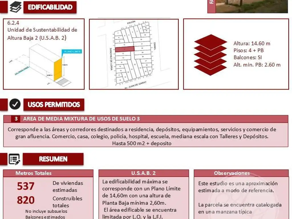 Altura Máxima: 14.60 m2 (PB + 4 pisos)