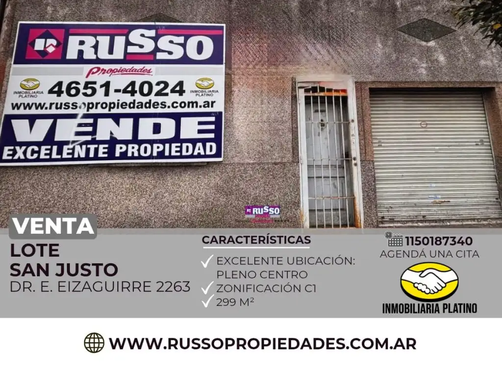 Lote en venta ubicado en pleno centro de San Justo, con zonificación C1 y una superficie total de 299 m². Cuenta con 8.59 de frente por 34.69 de fondo