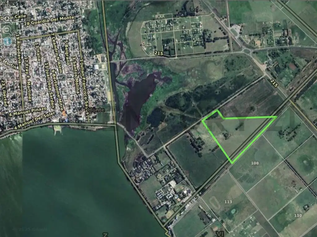 Ubicado en un estratégico lugar, a 1 km de la Ruta Provincial 41 y la RP 215, a 600 metros de la Laguna de Monte, y a 500 metros de la ciudad, este campo de 23 hectáreas arbolado y con un arroyo re encausado.