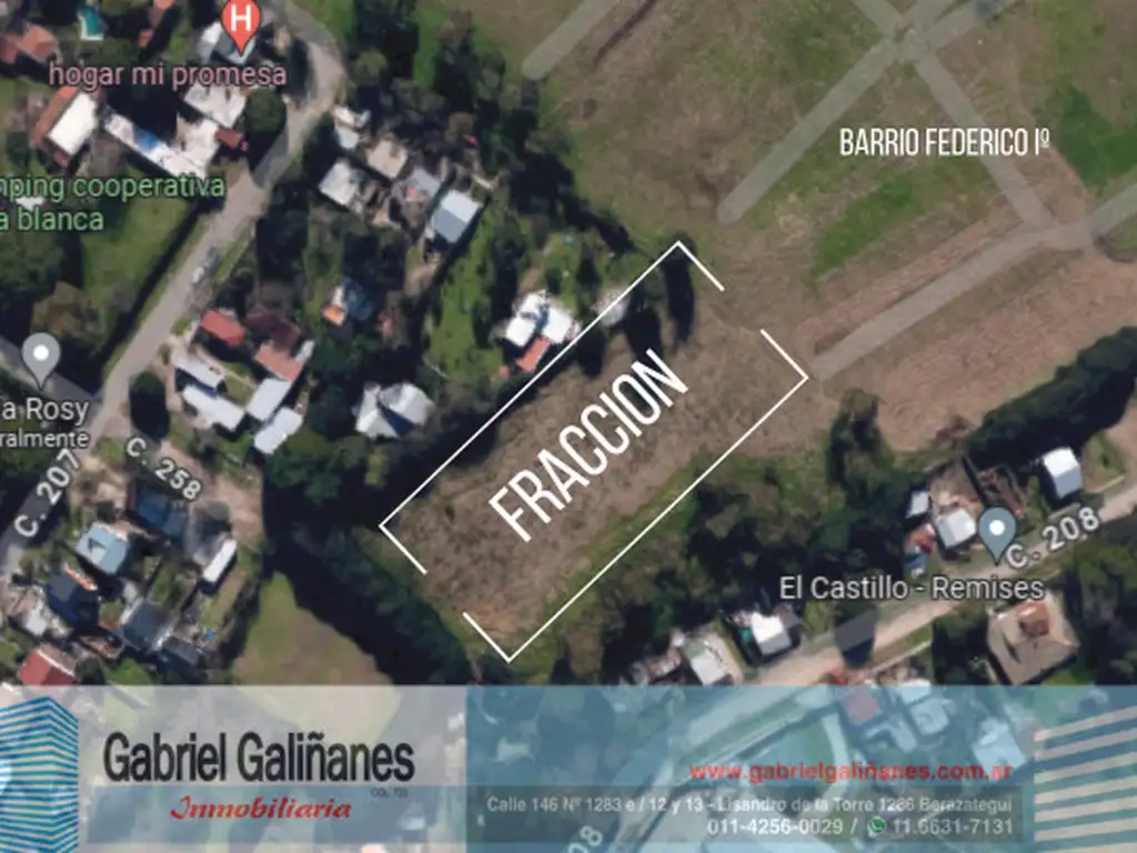 El lote se encuentra en la calle 258 entre 207 y 208, en la localidad de Sourigues.