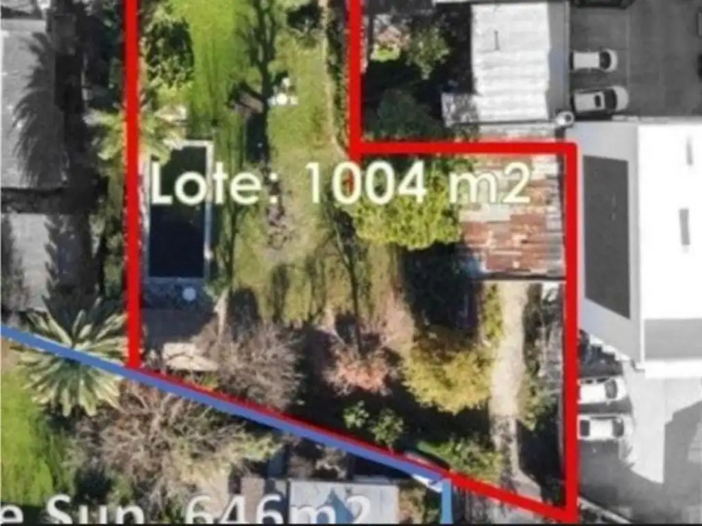 Lote en forma de martillo que se logra unificando la parcela de 682 m2 con 15.2 de frente sobre la calle Italia, con la subparcela (este lote esta como PH) lindera con salida a la calle Chacabuco de 322 m2 ( ESTA ULTIMA EN PH)